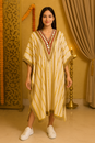 Ivory & Gold Striped Cotton Kaftan with Mirrored Neckline